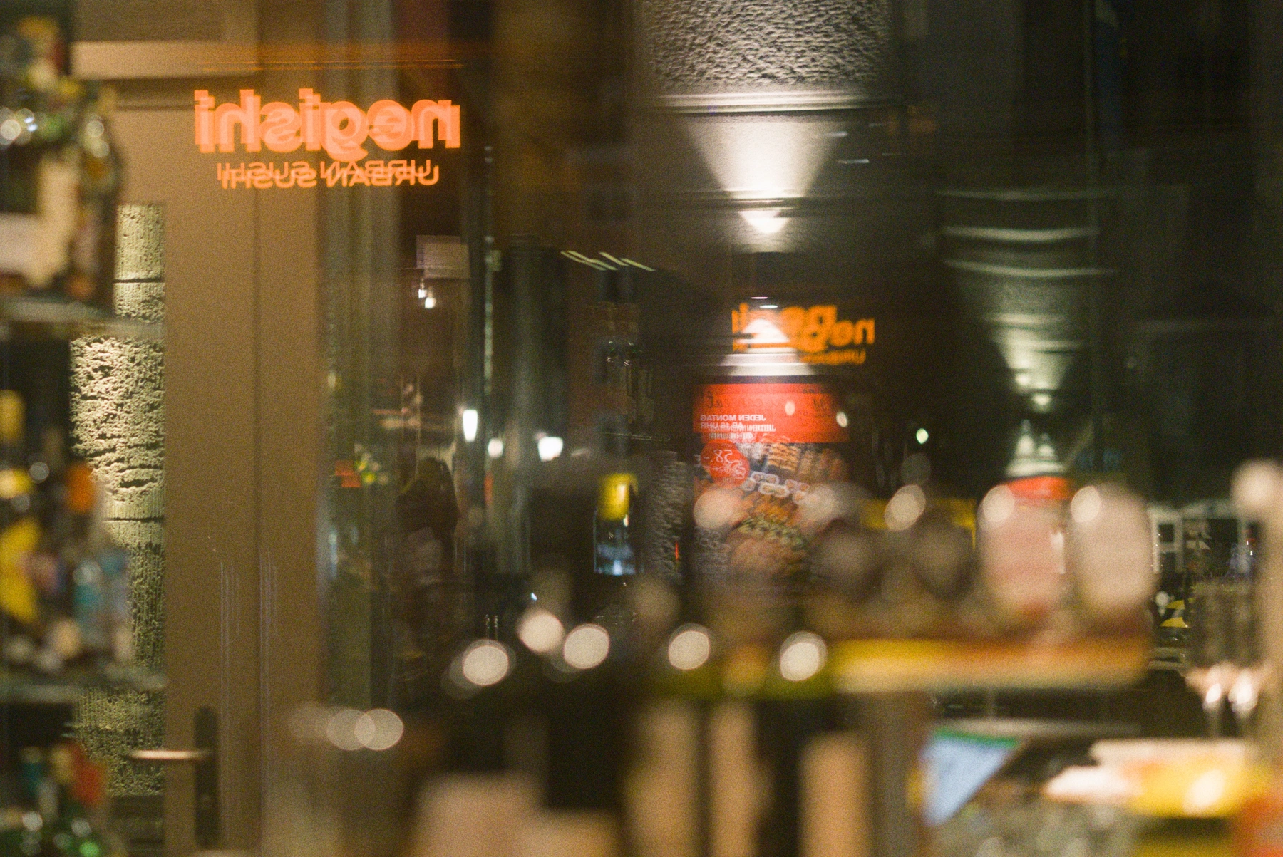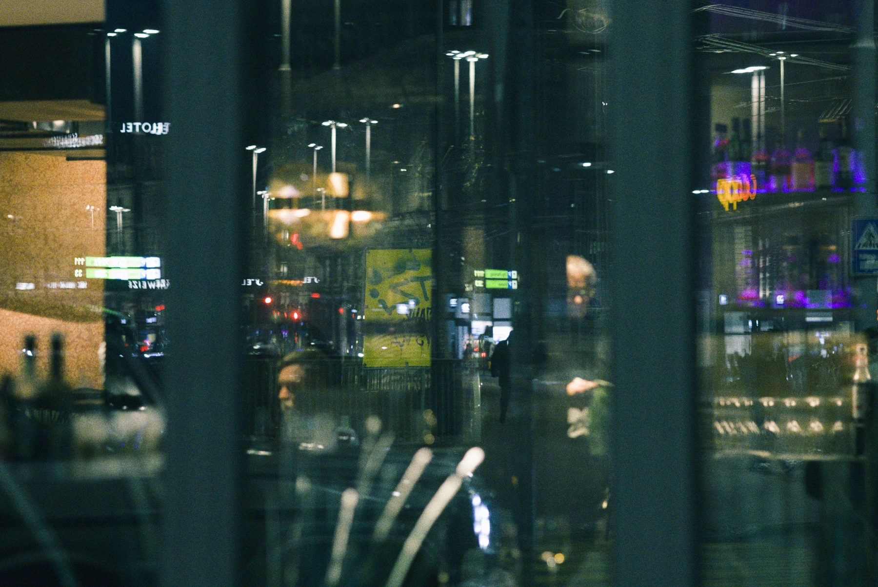 Bilder von nächtlichen Streifzügen durch urbane Räume. Mich interessiert das Spannungsfeld zwischen Nähe und Distanz: Menschen, gesehen durch Glas, Rahmen oder Reflexionen.